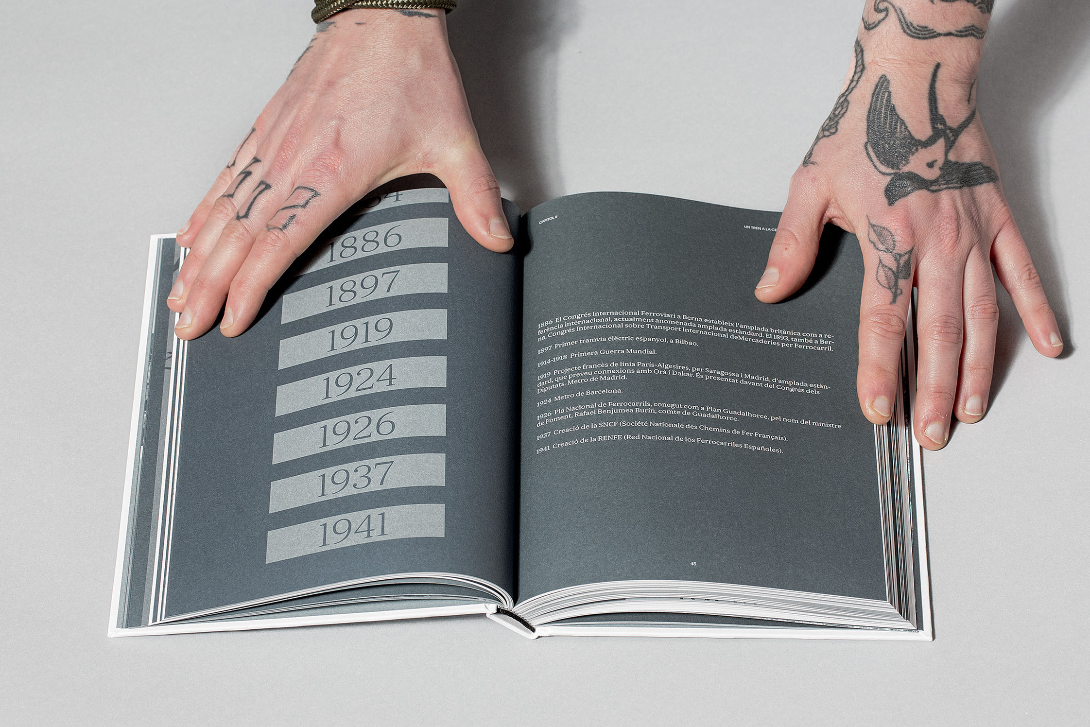 La publicació hi predomina el paper blanc amb textura marcada que ens recorda als paisatges nevats. Hi consten també ombres blavoses i diferents detalls metalitzats brillants.